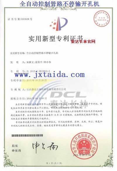 全自动控制室高效管路不停输封堵装置-实用型专利证书